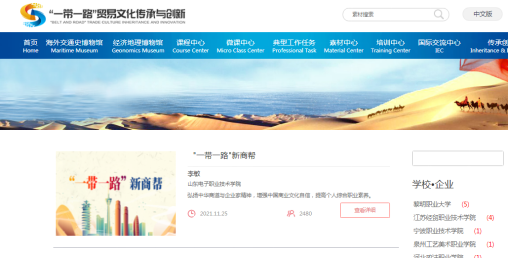 11月18日,教育部发布了《关于公布职业教育专业教学资源库2021年验收结果的通知》(教职成司函〔2022〕20号),我校承担的国家职业教育“一带一路”贸易文化传承与创新教学资源库中的《“一带一路”新商帮》特色课程项目顺利通过验收。