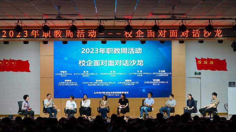 为弘扬“劳动光荣、技能宝贵、创造伟大”的时代风尚,宣传展示职业教育发展成果,营造全社会关心支持职业教育的良好氛围。作为职教周活动的一部分,5月16日,商务管理系邀请山东省电子商务协会、孩子王儿童用品股份有限公司、博科控股集团、顺丰速运、淄博敦煌网、世纪开元、家家悦等行业企业专家代表来校参加“校企面对面对话沙龙”活动,商务管理系300多名师生参加,商务管理系主任李敏主持对话沙龙环节。