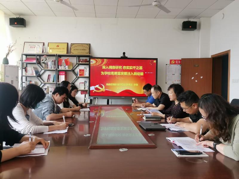 5月25日下午,商务管理系教师党支部书记李敏同志为支部党员教师上了一堂题为“深入调查研究夯实实干之道 为学校高质量发展注入新动能”的党课。