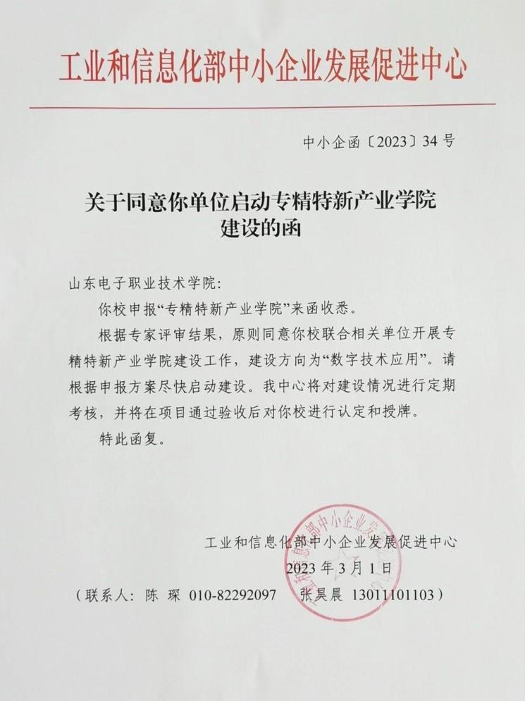 近日,工业和信息化部中小企业发展促进中心公布首批“专精特新产业学院”建设名单,山东电子职业技术学院“数字商务专精特新产业学院”获批立项,标志着山东电子职业技术学院深化产教融合工作又迈出突破性的一步。