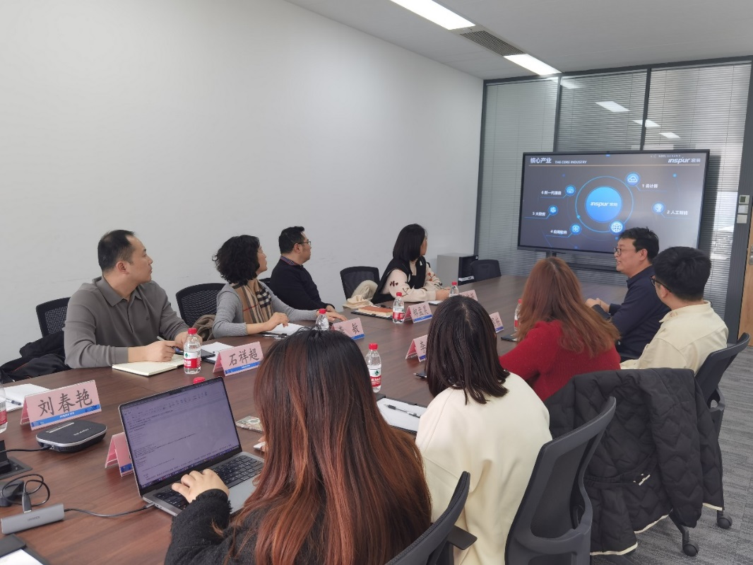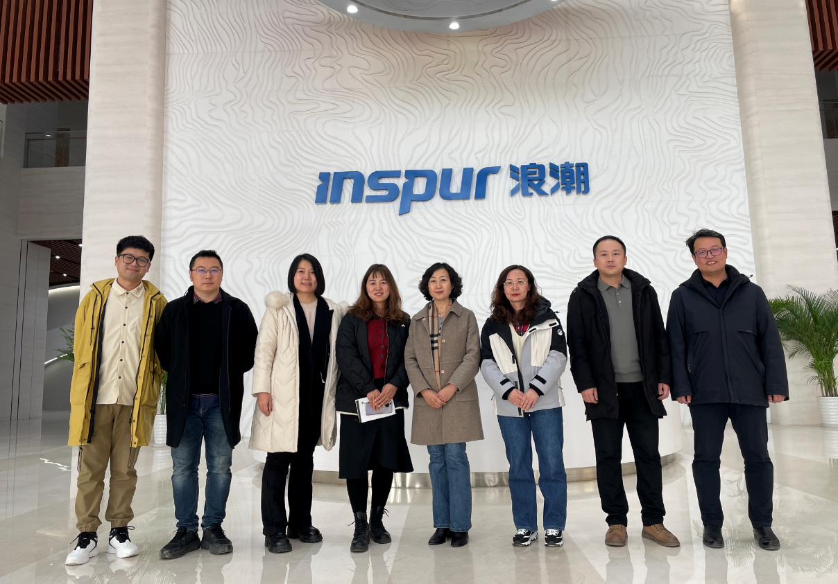 在浪潮智能终端有限公司交互显示事业部总经理李娜、技术负责人的陪同下,一行人参观了浪潮自主研发的虚拟现实终端数字人在AI电商直播本地生活领域的应用。双方就智能终端应用、学生认知实习、AI数据运营师职业鉴定等方面进行了座谈交流并达成了共识。
