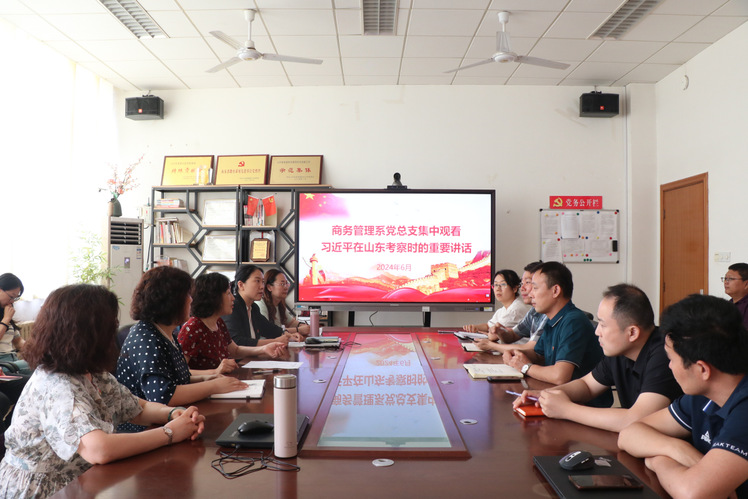 6月6日下午,商务管理系党总支召开理论学习会议,专题学习习近平总书记在山东考察时的重要讲话。商务管理系党总支全体党员参加集体学习。通过此次学习,党员同志深刻学习了习近平总书记对山东全面深化改革及高质量发展的深邃思考和战略谋划,感受到了习近平总书记对齐鲁大地的深切关怀,全体党员进一步提振了士气、树立了发展信心,大家纷纷表示要牢记习近平总书记所指方向继续稳扎稳打、努力奋斗。