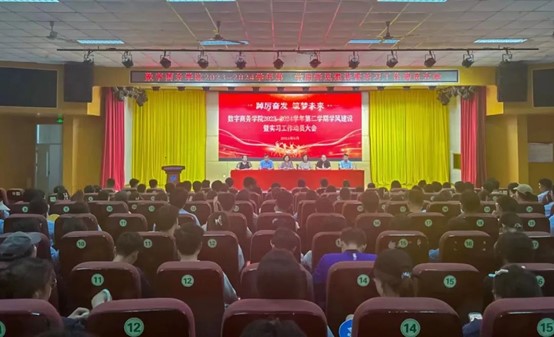 为了加强学风建设,做好实习安排工作,2024年6月12日,数字商务学院在学术报告厅组织召开2023—2024学年第二学期学风建设暨实习工作动员大会。数字商务学院全体干部及2022级学生参加会议,会议由综合科科长张佳主持。