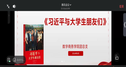 为深入学习贯彻习近平新时代中国特色社会主义思想,全面落实习近平总书记关于青年工作的重要思想,切实做好青年大学生的思想政治引领工作,数字商务学院团总支于2024年8月8日开展线上书记读书会。