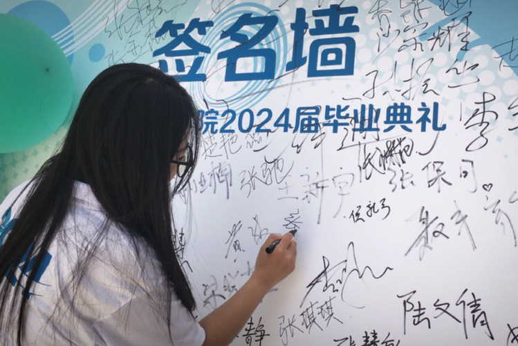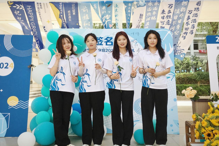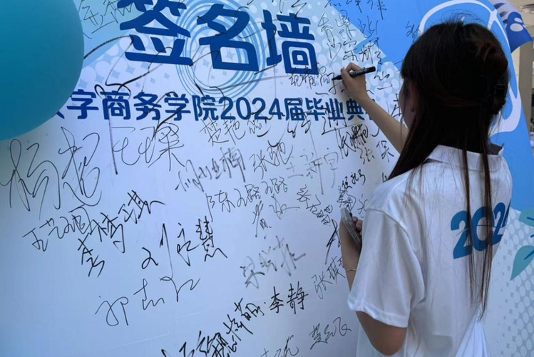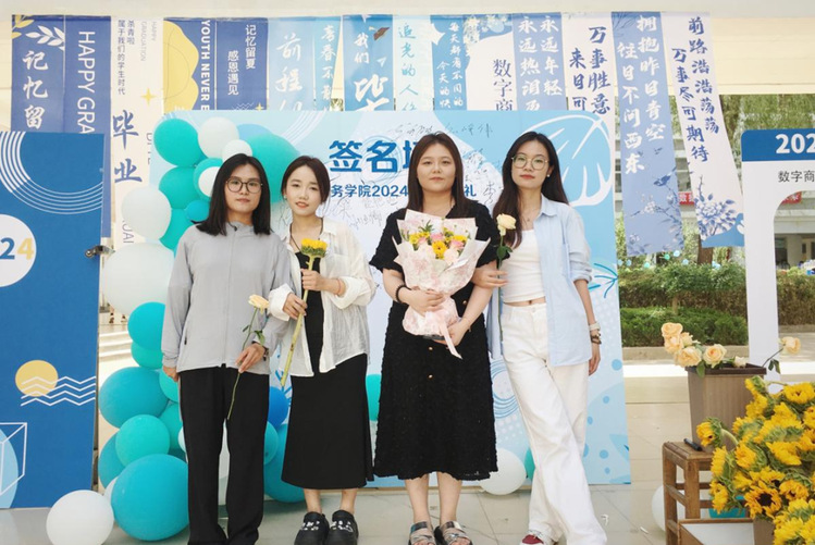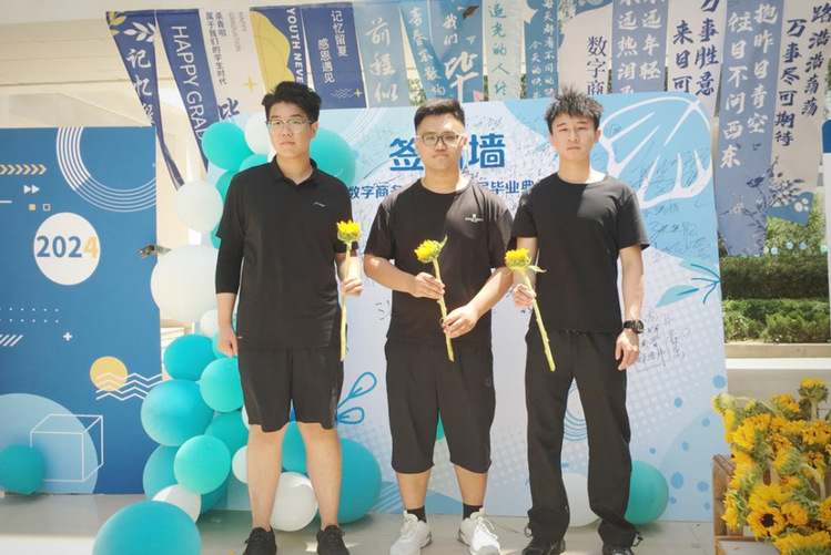 时光匆匆,在这个交织着离别与希望的季节里,数字商务学院为大家精心打造了一面特别的“毕业打卡墙”。这面打卡墙宛如一本记录大学岁月的相册,每一砖每一瓦都镌刻着那段难忘时光的印记。驻足其前,不禁让人回想起在图书馆里专心致志地研读时光,那些为了理想不懈奋斗的日日夜夜,以及和同窗们共同讨论、交流的温馨画面。