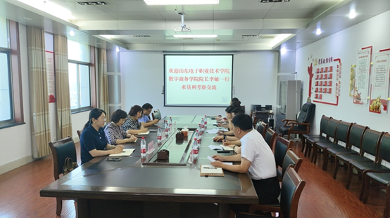 座谈会上,张岩峰介绍了东营市垦利区电商发展现状、电商产业发展制约因素等方面的情况,垦利区农业农村局、海洋发展和渔业局、人力资源和社会保障局等相关领导分别介绍了东营市垦利区特色产业发展现状、特色农副产品优势、电商发展遇到的瓶颈以及对数字电商和数字营销专业人才的迫切需求等情况。李敏介绍了我校专业集群布局和数字商务学院基本情况,对数字商务专业群各专业定位和面向服务、产业特色人才培养做了全面介绍。随后围绕如何加强后续深度合作、如何推进政行校企合作培育数字营销和数字电商人才、如何助力乡村振兴等问题展开深入交流,并达成合作共识。
