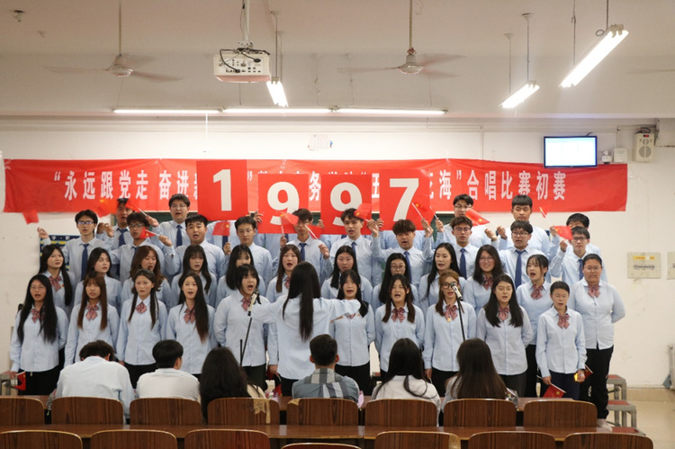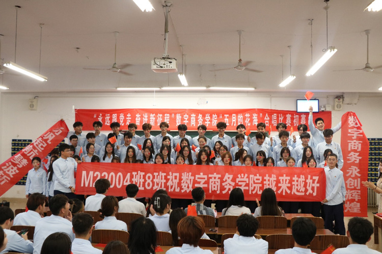 数字商务学院举办“永远跟党走,奋进新征程”暨“五月的花海”合唱比赛初赛。各合唱团倾力演绎,歌颂党的伟大精神与祖国的繁荣昌盛,展现了当代大学生奋发向上的精神面貌。