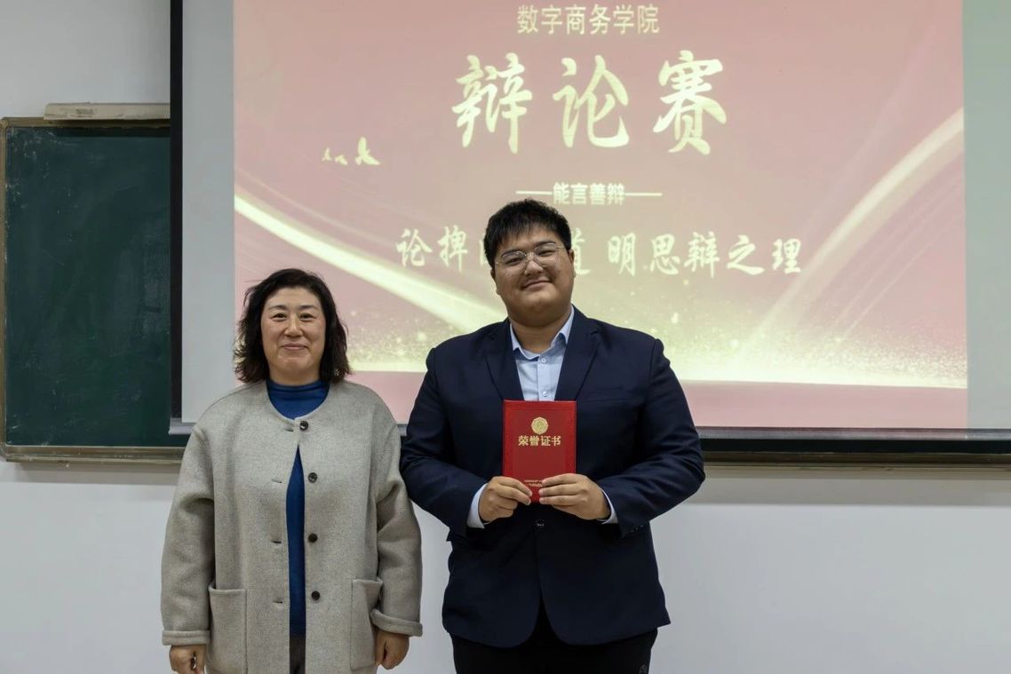 接下来就是我们本场辩论赛的颁奖环节,一等奖为M24001班,二等奖为M24009班,三等奖为M24005班,由团总支书记贾子龙老师为获奖班级颁奖。获得整场辩论赛的最佳辩手是M24001班的鞠明睿。由党总支副书记栾秋平老师为获奖者颁奖。