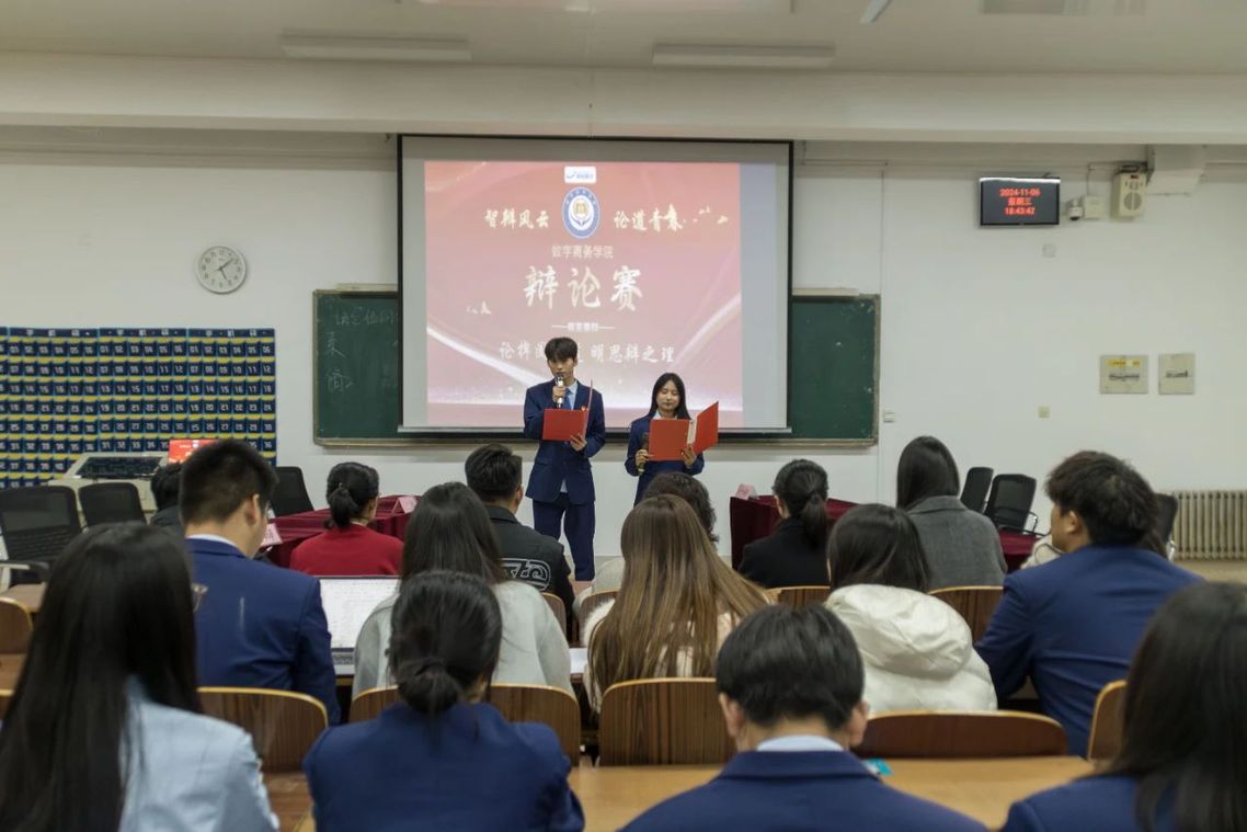 为激发青年学子思辩潜能、培养批判性思维与公共演讲能力,旨在通过激烈的思维碰撞,引导学生深入思考社会现象,培养独立思考与解决问题的能力的——“智辩风云,论道青春”为主题的辩论赛决赛,于11月6日在阶梯三教室拉开序幕,商务管理系党总支副书记栾秋平、团总支书记贾子龙、全体辅导员老师及学生干部代表和众多学生观众齐聚一堂,共同见证了这场智慧与口才的盛宴。