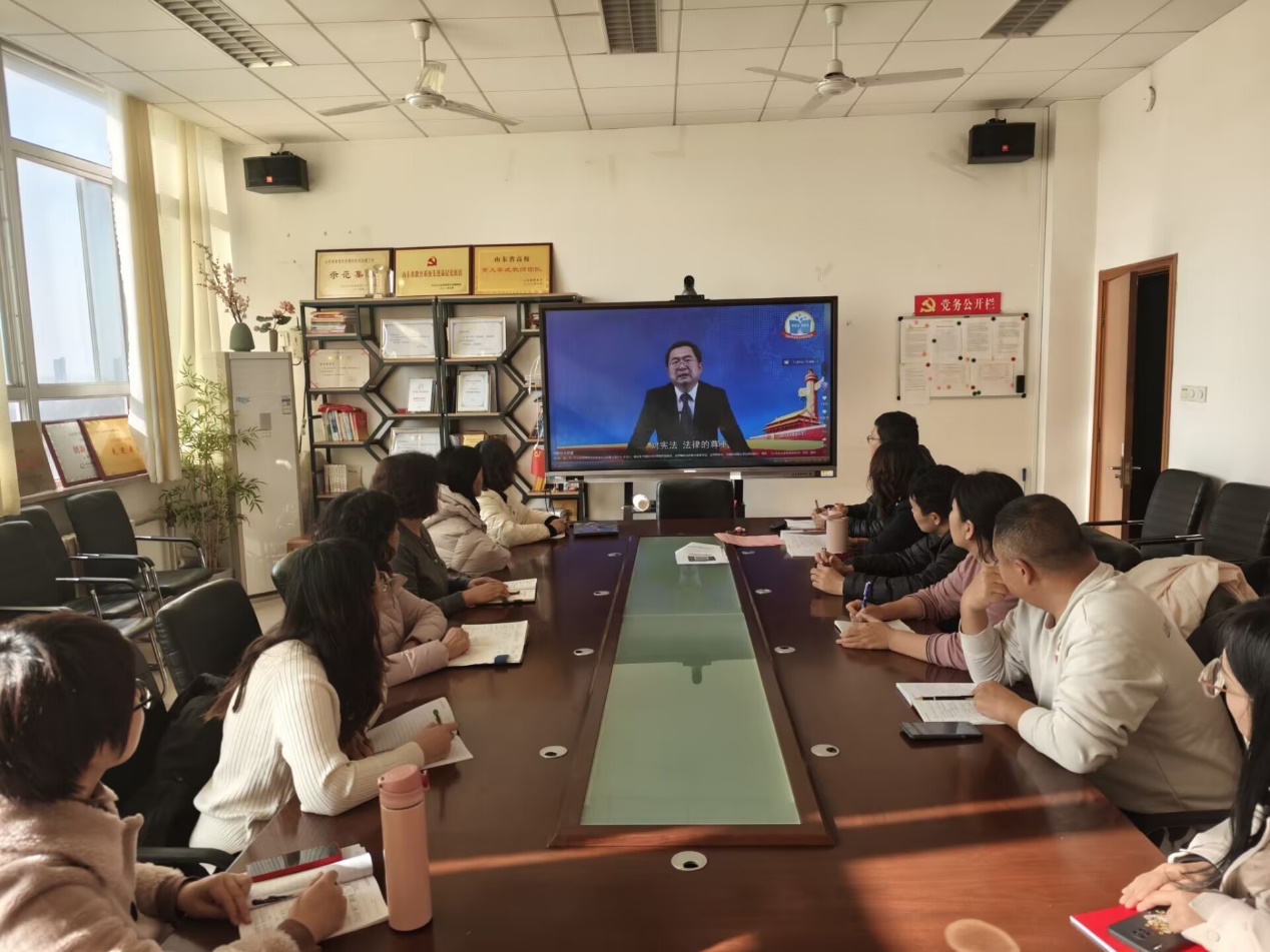 首先,党支部书记周雪莉同志带领支部党员学习宪法学知识体系,学习习近平总书记关于宪法的重要论述,强调要以习近平总书记关于宪法的重要论述为科学指引,不断深入学习习近平法治思想,随后组织党员集中收看了“学宪法 知宪法”公益大课堂暨2024年公民法治素养提升活动公益视频,通过集中系统学习,党员教师熟悉了宪法知识,提高了尊崇宪法、学习宪法、遵守宪法、维护宪法的法律意识和法治观念。