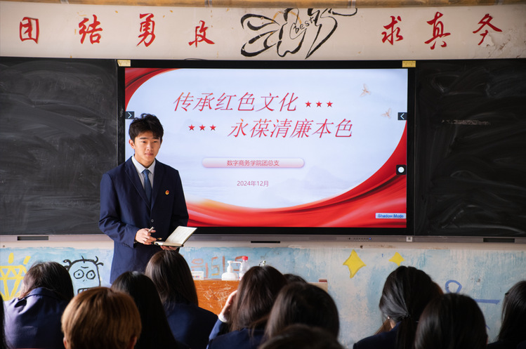为深入贯彻党的教育方针,加强青年学生的思想政治教育,弘扬革命传统,培育清廉品质,商务管理系团总支于2024年12月13日在3406教室开展了以“传承红色文化,永葆清廉本色”为主题的团课。