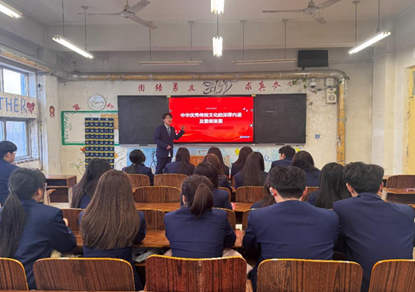 随后,王科洋讲述文化传承的重要意义,说明其不仅是民族历史的延续,更是当代社会发展的重要文化支撑。在五千多年的发展中,中华民族形成了以爱国主义为核心的团结统一、爱好和平、勤劳勇敢、自强不息的伟大民族精神。中华优秀文化体现着披荆斩棘、勇毅前行的无畏精神。“一枝独秀不是春,百花齐放春满园”,只有将中华优秀传统文化推向世界舞台,才能在全球文化激荡中站稳脚跟,展现独特魅力。