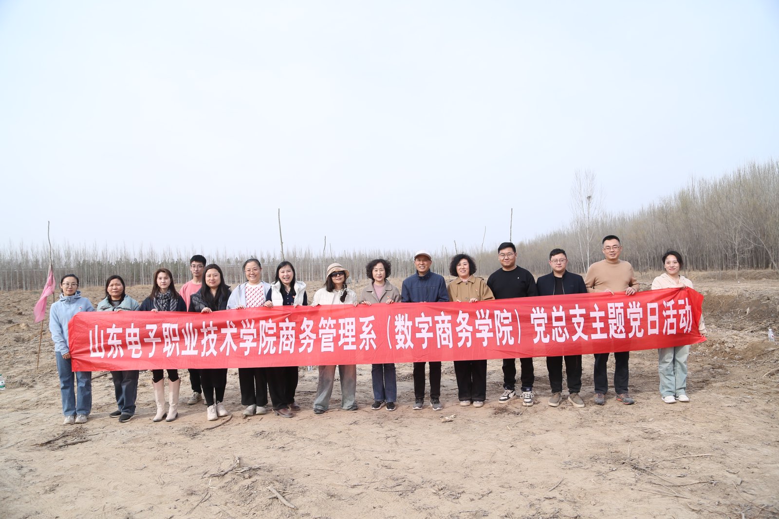 2025年3月12日,正值中国第47个植树节,商务管理系党总支与山东省跨境电子商务协会、山东省社会组织综合党委马鞍山路片区党建工作机构一起举办了“党建引领绿色行,共植青春希望林”植树节主题党日活动,旨在践行绿色发展理念,推动党建与生态建设深度融合。商务管理系党总支书记李敏、党总支副书记栾秋平与党员代表参加了此次活动。