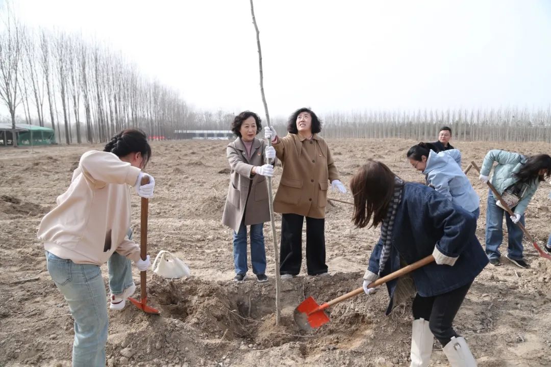 活动现场位于济南北郊林场,处处洋溢着盎然生机与活力。在北郊林场技术骨干的专业指导下,参加活动的人员迅速投入到紧张而有序的植树活动中。大家分工协作、配合默契,用心种植每一株树苗,整个现场呈现出一片劳动景象,欢声笑语回荡在田间树林,成为春日里一道亮丽的风景线。