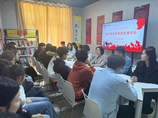 与学生面对面零距离座谈,是商务管理系一项常规工作,每个月定期组织,循环全面覆盖。通过座谈会方式,不仅为师生提供了一个面对面交流的平台,也为系部后续的教育教学改革和学生管理工作提供了依据。商务管理系将继续秉持以学生为本位的育人理念,不断优化教育教学环境,全面提高人才培养质量。