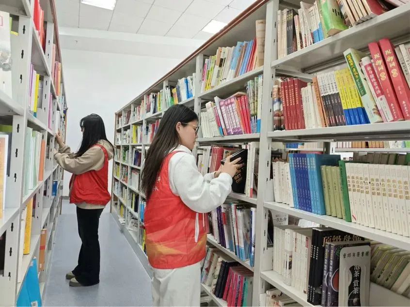 在书架区域,志愿者们则化身成为书籍的“守护者”。他们认真细致地整理归还的图书,将每一本书都准确无误地放回原位。通过快速分类和耐心摆放,原本杂乱无章的书架变得井井有条,为读者创造了一个整洁、舒适的阅读环境,极大地提升了阅读体验。