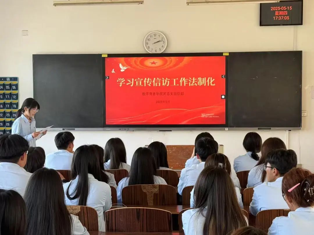 为深入贯彻落实习近平法治思想和习近平总书记关于加强和改进人民信访工作的重要思想,增强法治意识,营造依法信访的良好氛围,2025年5月14日,商务管理系团总支于3306开展“书记读书会——学习宣传信访工作法制化”此次读书会旨在学习宣传信访工作法制化,树牢法治思维,共筑和谐校园法治根基