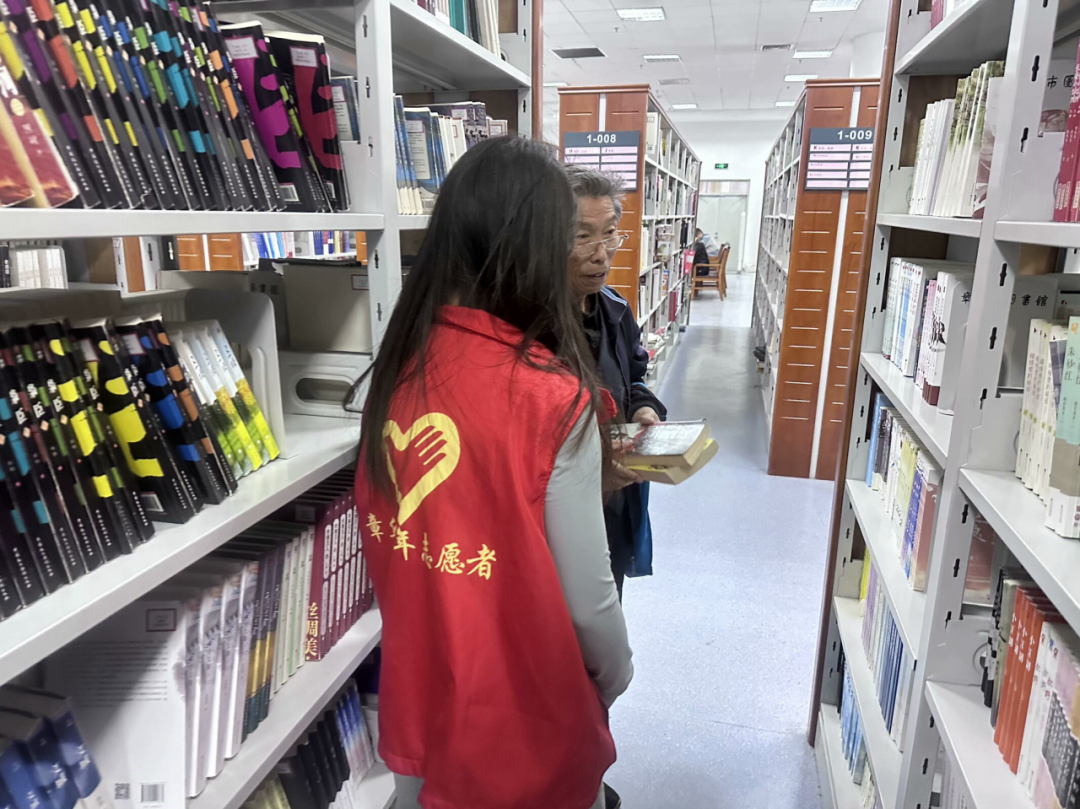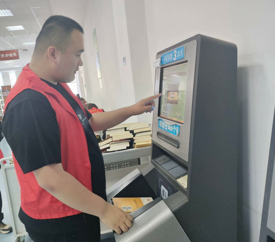 除了整理书架和讲解绘本,志愿者们还积极帮助读者借阅书籍。他们热情地接待每一位前来咨询的读者,耐心地解答他们关于借阅流程、书籍位置等方面的问题。对于一些不太熟悉自助借阅设备的读者,志愿者们手把手地教他们如何操作,从扫描图书条码到完成借阅手续,每一个步骤都讲解得细致入微。在志愿者们的帮助下,读者们顺利地借到了自己心仪的书籍,脸上洋溢着满意的笑容。一位老年读者感激地说:“这些孩子真有耐心,要不是他们帮忙,我还真不知道怎么用这机器借书呢。