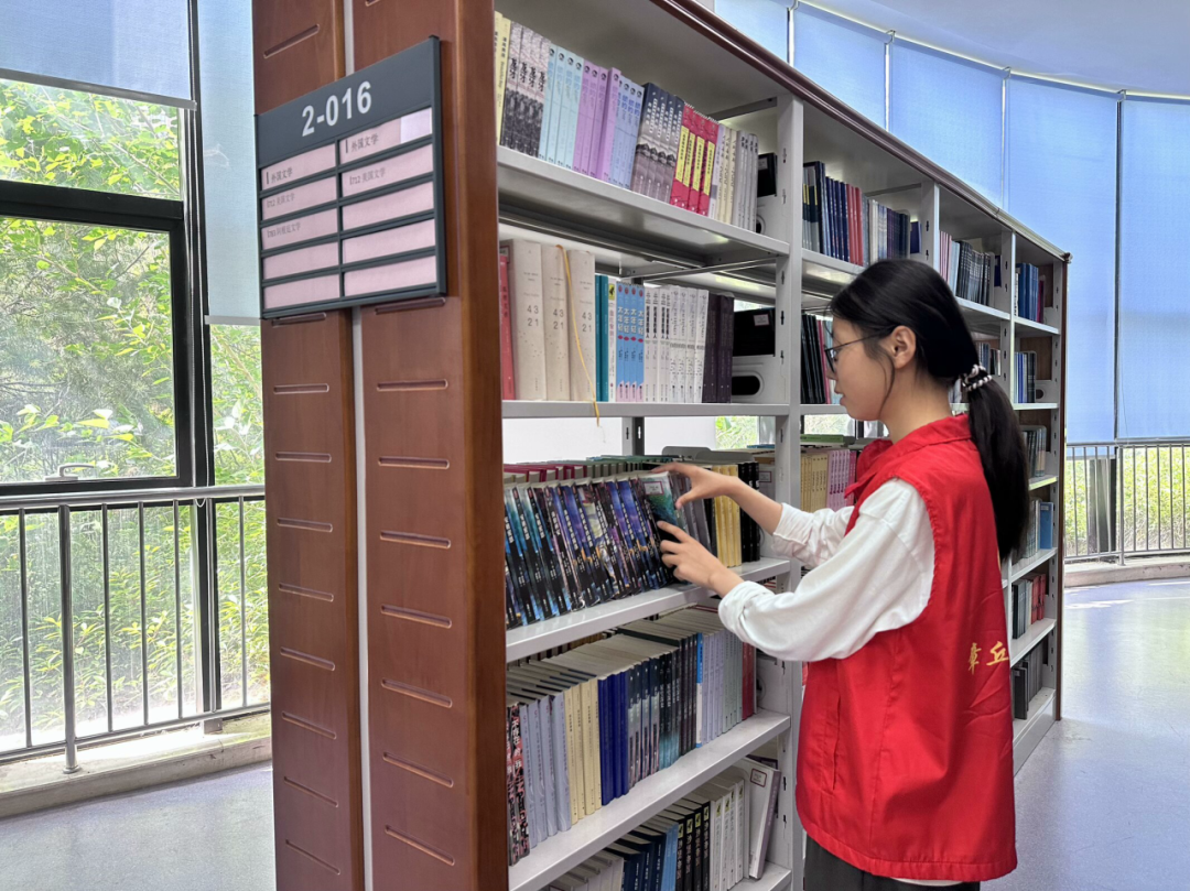 活动现场,志愿者们迅速化身为图书馆的"秩序守护者"。面对馆内海量藏书因频繁借阅出现的杂乱情况,大家迅速分工协作:有人手持检索设备穿梭在书架间,将散落各处的书籍精准归类;有人化身"图书美容师",将整理好的书籍按索书号依次排列,指尖轻触书脊,让每一本书都"站"得整齐挺拔。经过数个小时的奋战,原本错落无序的书架焕然一新,宛如排列整齐的知识方阵,静静等待读者的探索。