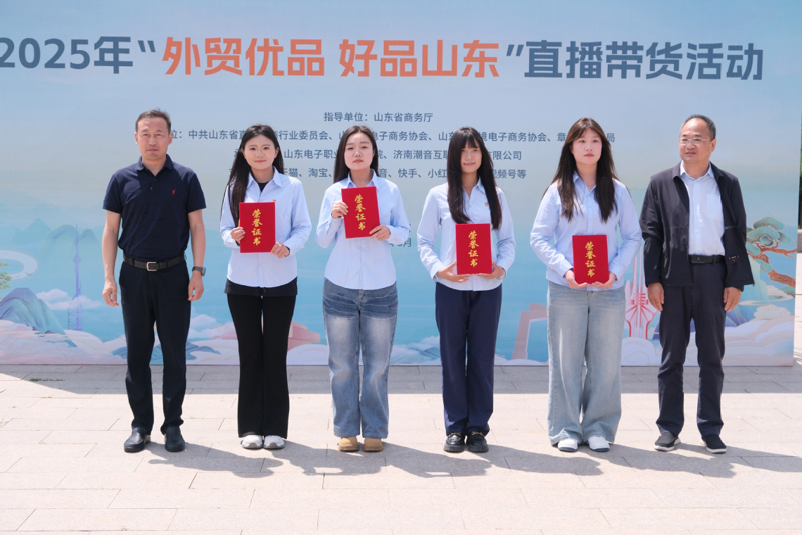 2025年5月15日,由山东省商务厅指导,中共山东省直播电商行业委员会、山东省电子商务协会、山东省跨境电子商务协会、章丘区商务局联合主办,我校与济南潮音互联网科技有限公司共同承办的外贸优品·好品山东直播带货进校园活动在校园广场启幕。本次活动获得天猫、淘宝、京东、抖音、快手、小红书、腾讯视频号等电商平台支持,吸引全省50余家优质企业携外贸优品、非遗老字号、特色工艺品参展,既为消费者呈现品质盛宴,也为师生搭建了行业实践平台。