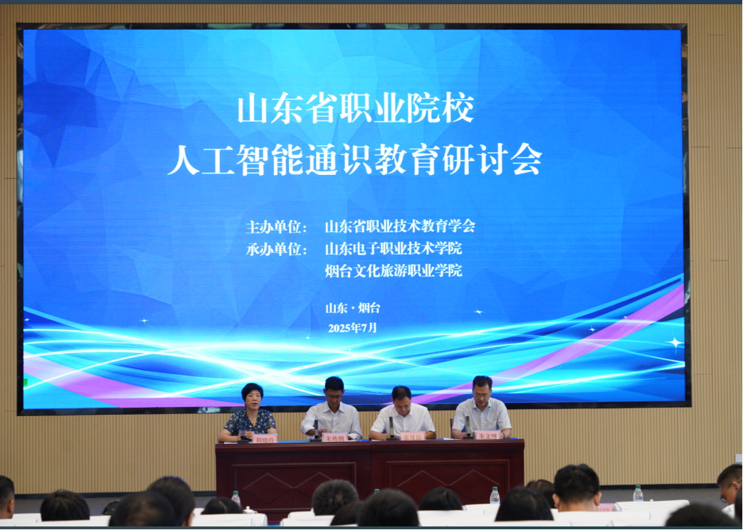 2025年7月13日至14日,由山东省职业技术教育学会主办,我校与烟台文化旅游职业学院联合承办的山东省职业院校人工智能通识教育研讨会在烟台文化旅游职业学院顺利举办。来自全省的职业院校领导、职能部门负责人、人工智能相关专业骨干教师等共计100余人齐聚一堂,围绕人工智能通识教育的政策解读、课程建设、教学实践等议题展开深度研讨。