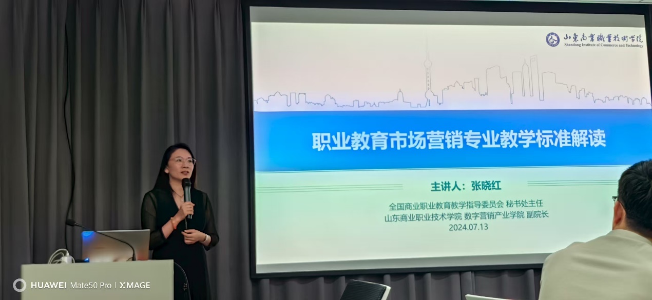 山东商业职业技术学院数字营销产业学院副院长张晓红以职业教育国家专业教学标准为依据,对市场营销专业的职业面向、培养目标、培养规格进行了全面解读,并系统梳理了课程设置的搭建思路。她的讲解帮助参会教师更好地理解了专业教学标准的内涵和要求,为优化课程设计、提高教学质量提供了有力指导。