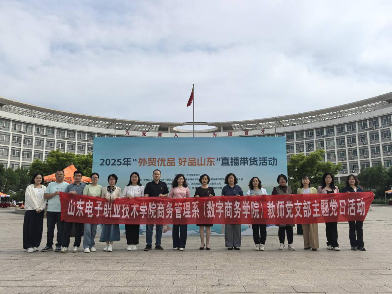 2025年5月15日,“外贸优品・好品山东”直播带货进校园活动在山东电子职业技术学院启幕。本次活动由山东省商务厅指导,中共山东省直播电商行业委员会、山东省电子商务协会等联合主办,山东电子职业技术学院与济南潮音互联网科技有限公司共同承办,吸引了全省50余家优质企业携外贸优品、非遗老字号、特色工艺品参展。山东电子职业技术学院商务管理系教师党支部的党员老师们以此次活动为契机,开展主题党日活动,以实际行动助力活动顺利开展,展现了党员教师的责任与担当。