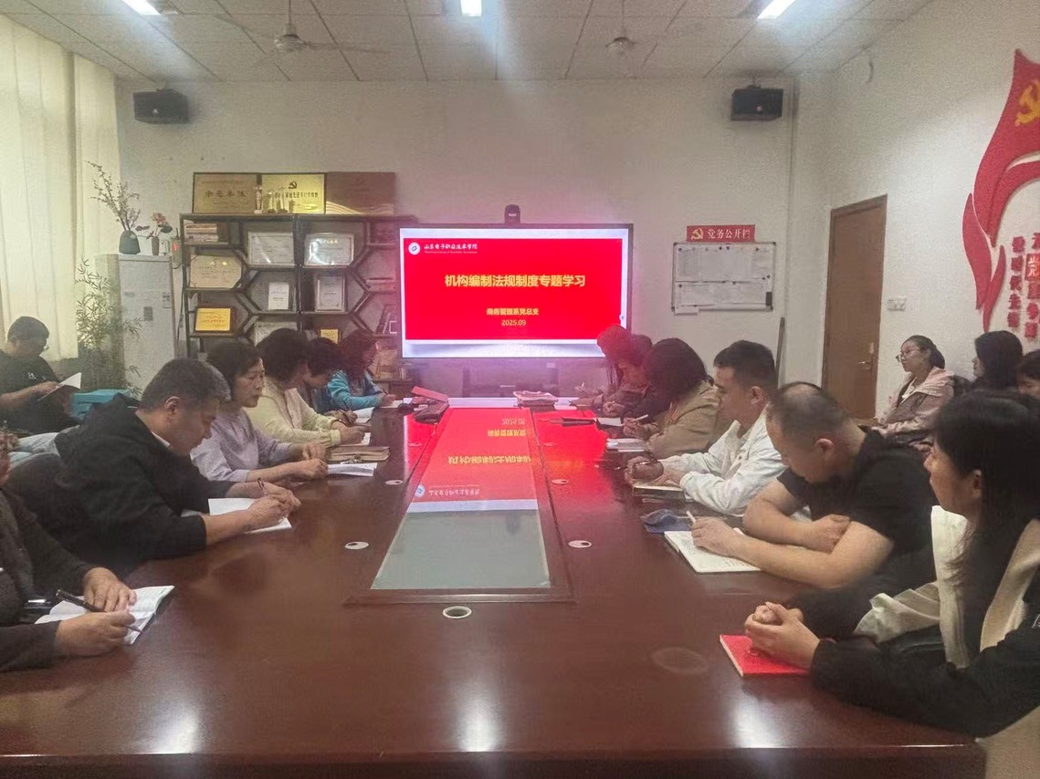 为深入贯彻落实党中央关于机构编制工作的决策部署,强化党员教师的制度意识与规矩意识,9月25日,山东电子职业技术学院商务管理系党总支组织开展了机构编制法规制度专题学习会。本次学习由党总支书记李敏主持并领学,全体党员教师参加。