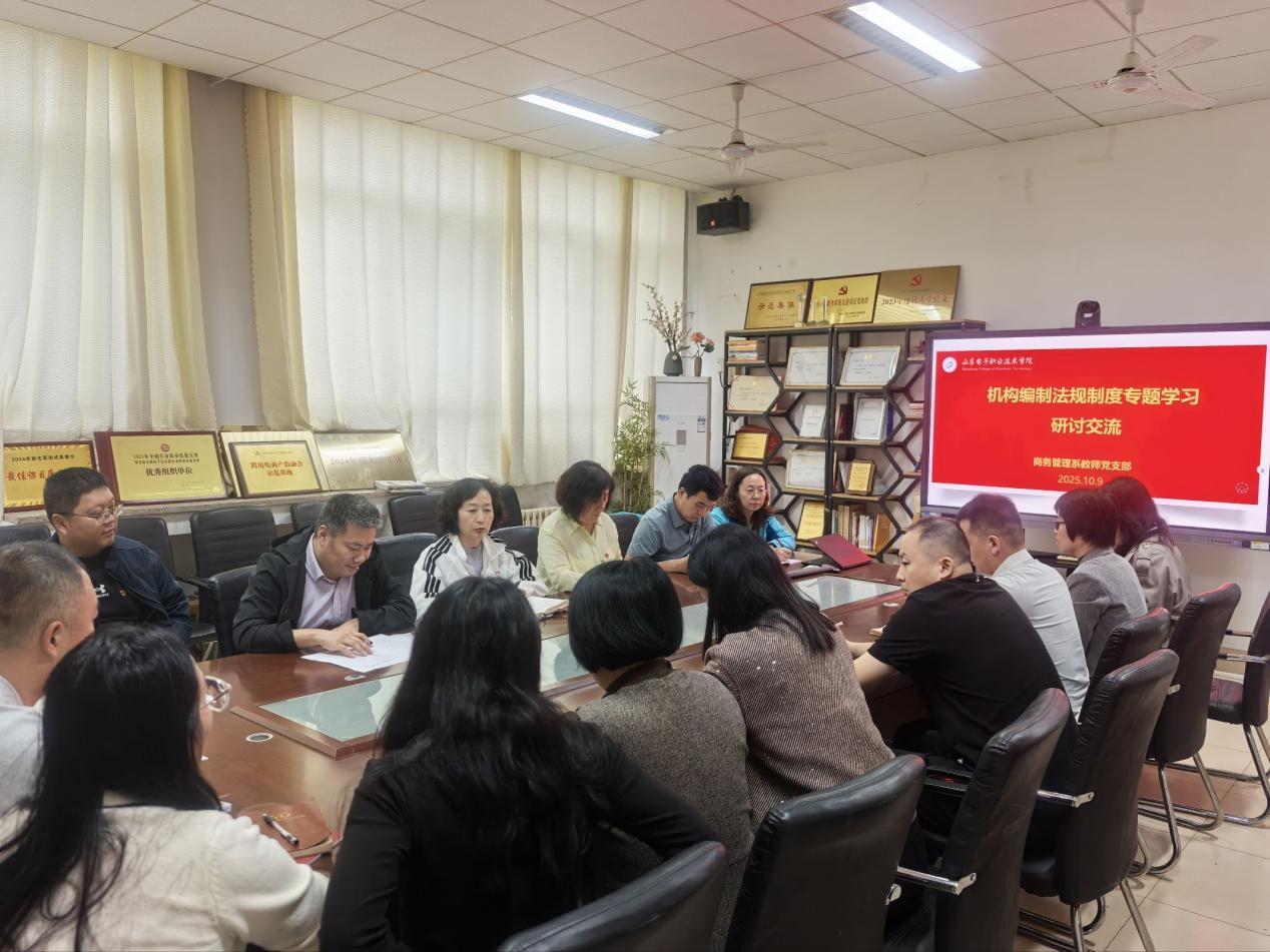 10月9日,商务管理系教师党支部围绕《习近平在二十届中央机构编制委员会第一次会议上的讲话》《中国共产党机构编制工作条例》《山东省事业单位机构编制管理办法》《机构编制违规违纪违法行为处理和问责规则(试行)》等文件的学习,召开主题党会,开展积极热烈的讨论。