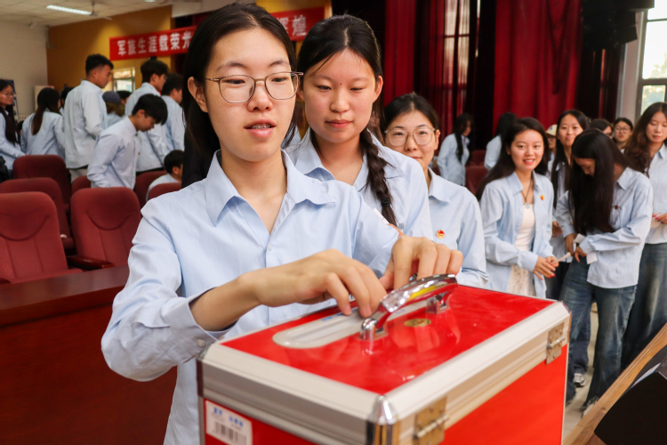 大会第四项,各学生会代表秉持着认真负责的态度进行投票,为系部的发展选出优秀的学生会干部。