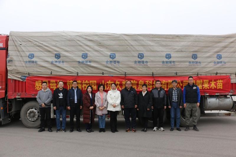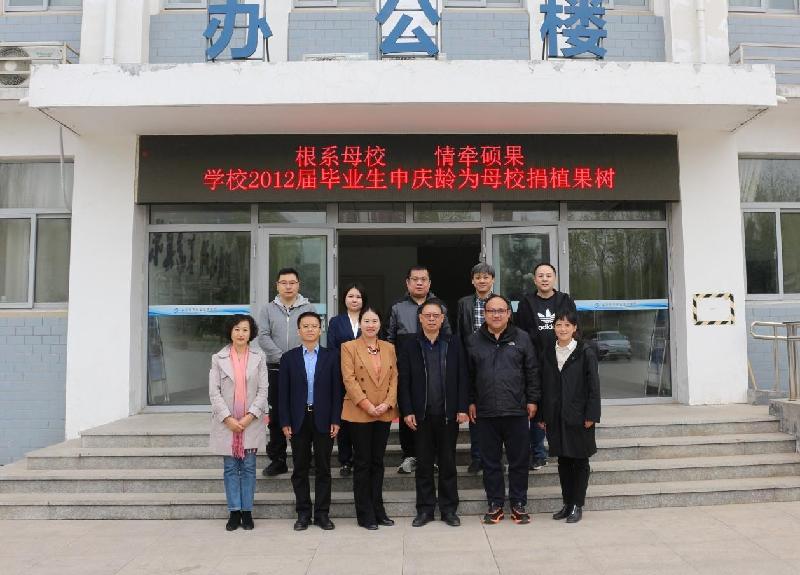 捐赠仪式上,校友申庆龄回顾了求学期间的点点滴滴,对母校的悉心培养表示感谢,希望学弟学妹们能够像这些小树苗一样茁壮成长,将来成为母校的骄傲,国家的栋梁。李卫东对申庆龄此次返校表示欢迎,对捐赠果树苗表示感谢,并为其颁发捐赠证书。
