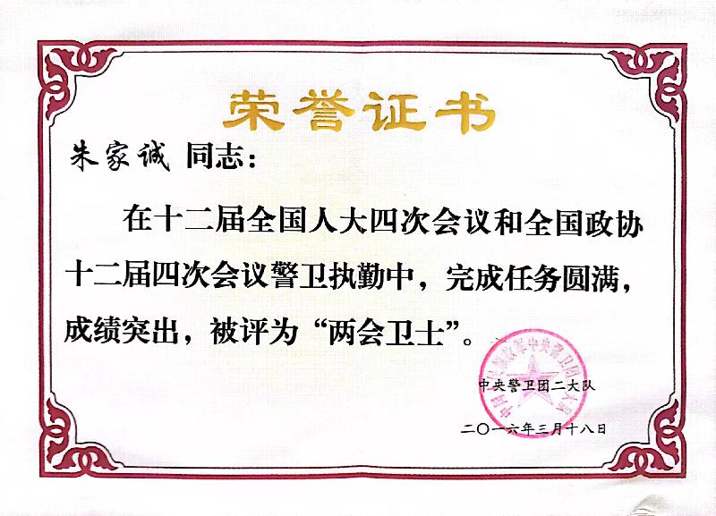 2015、2017、2018年三次参加全国“两会”现场执勤,获得“两会卫士”荣誉称号;