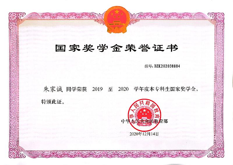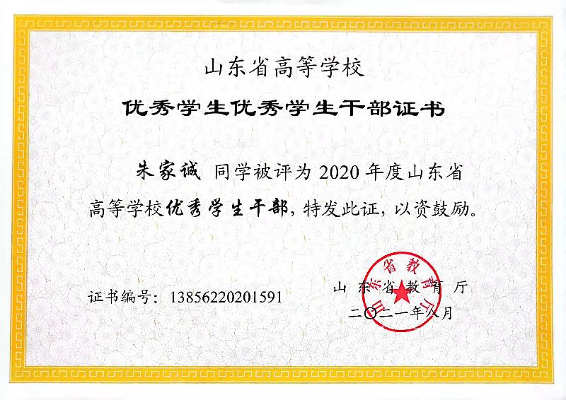 2019-2020学年荣获国家奖学金、山东电子职业技术学院优秀学生干部;