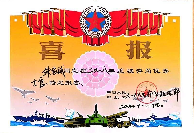 2018年因全年工作表现突出被评为“优秀士官”,并荣获嘉奖一次;