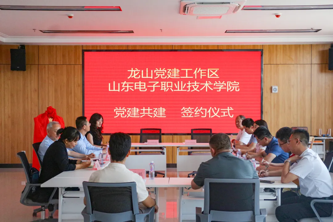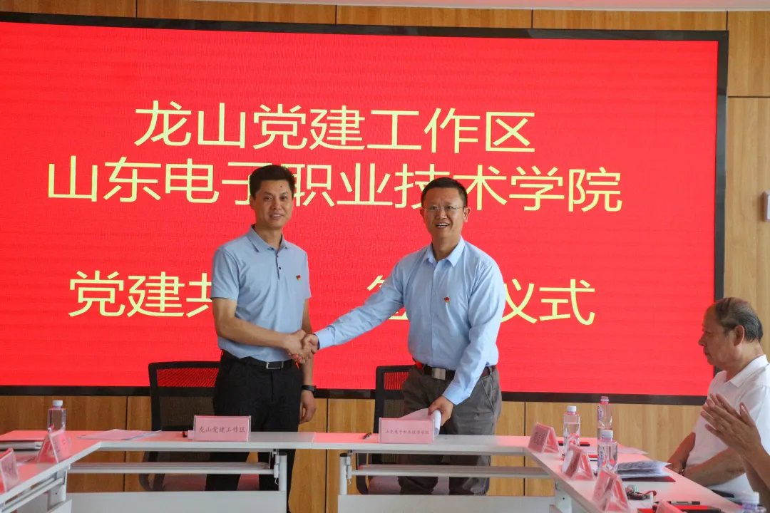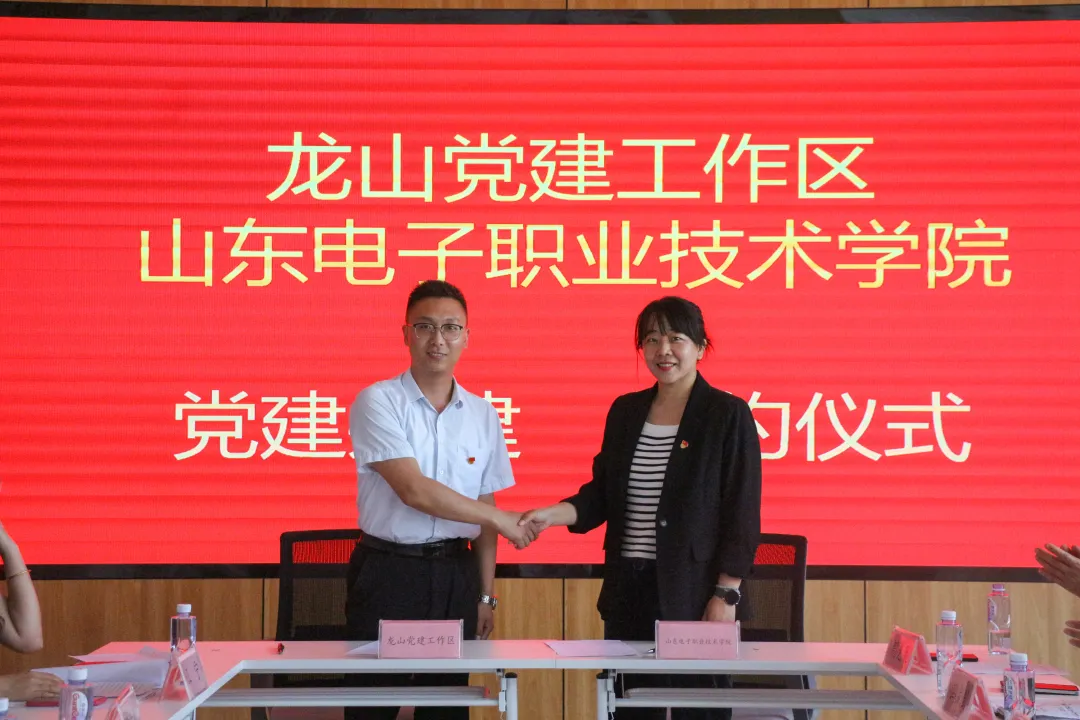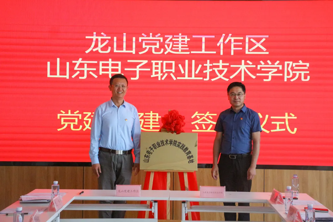 在党建工作区党委书记马成剑和张颖静分别对党建工作区和“e网情深”服务队情况进行详细介绍后,双方签订党建共建协议、团建共建协议,崔升刚与王锡银共同为“山东电子职业技术学院实践教育基地”揭牌。此次共建是我院党建工作创新发展的一项重要内容,对于提高党组织凝聚力、战斗力、号召力,促进党组织间的相互学习、共同进步具有重要意义。