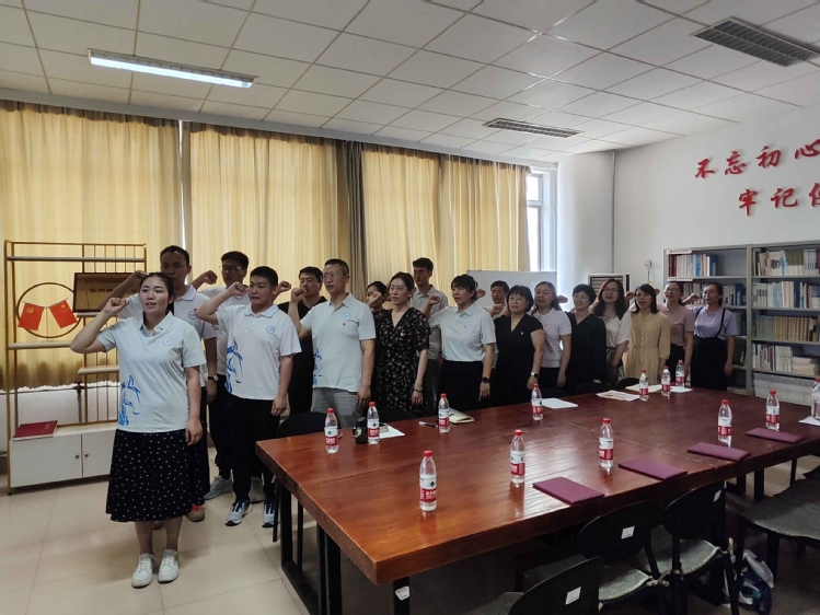 全体党员重温入党誓词。铿锵有力的誓言回荡在会议室内外,让人倍感振奋。