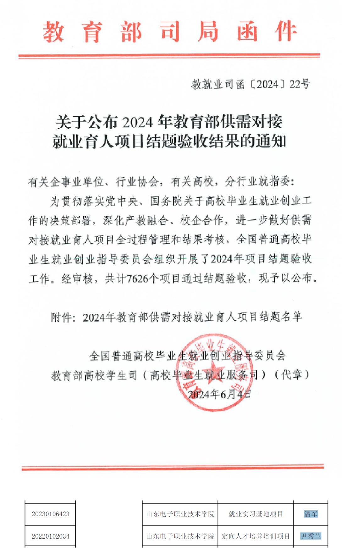 通过2024年教育部供需对接就业育人项目结题验收(2项)