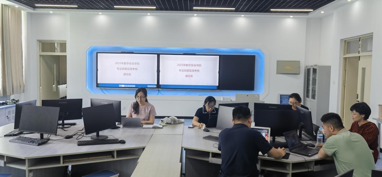 2025年6月17日,数字安全学院在5104实训室组织7位教师参加通信类专业技能实践考核,依托5G站点工程仿真系统,完成站点选址、勘察、方案设计、工程预算、实施及验收全流程实操。