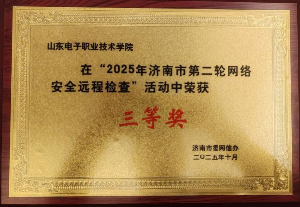 2025 年 9 月,我校入选济南市委网信办遴选的 “济南市网络和数据安全技术支撑单位”。10 月,学校承接济南市委网信办组织的 “2025 年济南市第二轮网络安全远程检查” 技术支撑任务,由网络工程系尹秀兰、车长明老师带领孙浩等学生组成团队,圆满完成工作并获市委网信办高度认可与表扬,这是我校深入推进 “产教融合” 战略的生动实践。