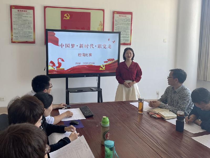 5月18日,为庆祝中国共产党成立100周年,向党的百年华诞献礼,回顾党的光辉历程,讴歌党的丰功伟绩,进一步引导广大教师热爱党、拥护党,听党的话、跟党走,思政部党支部开展了以“中国梦 新时代 跟党走”为主题的朗诵活动。