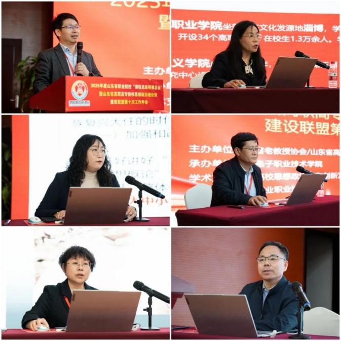 在“大中小学思政课一体化建设、‘大思政课’建设经验交流”环节,山东轻工职业学院、山东商业职业技术学院、潍坊职业学院、济南幼儿师范高等专科学校、山东电子职业技术学院五所院校代表分享育人体系构建、一体化改革与创新实践方面的经验与案例,展现了山东省职业院校在思政育人领域的深耕与创新。