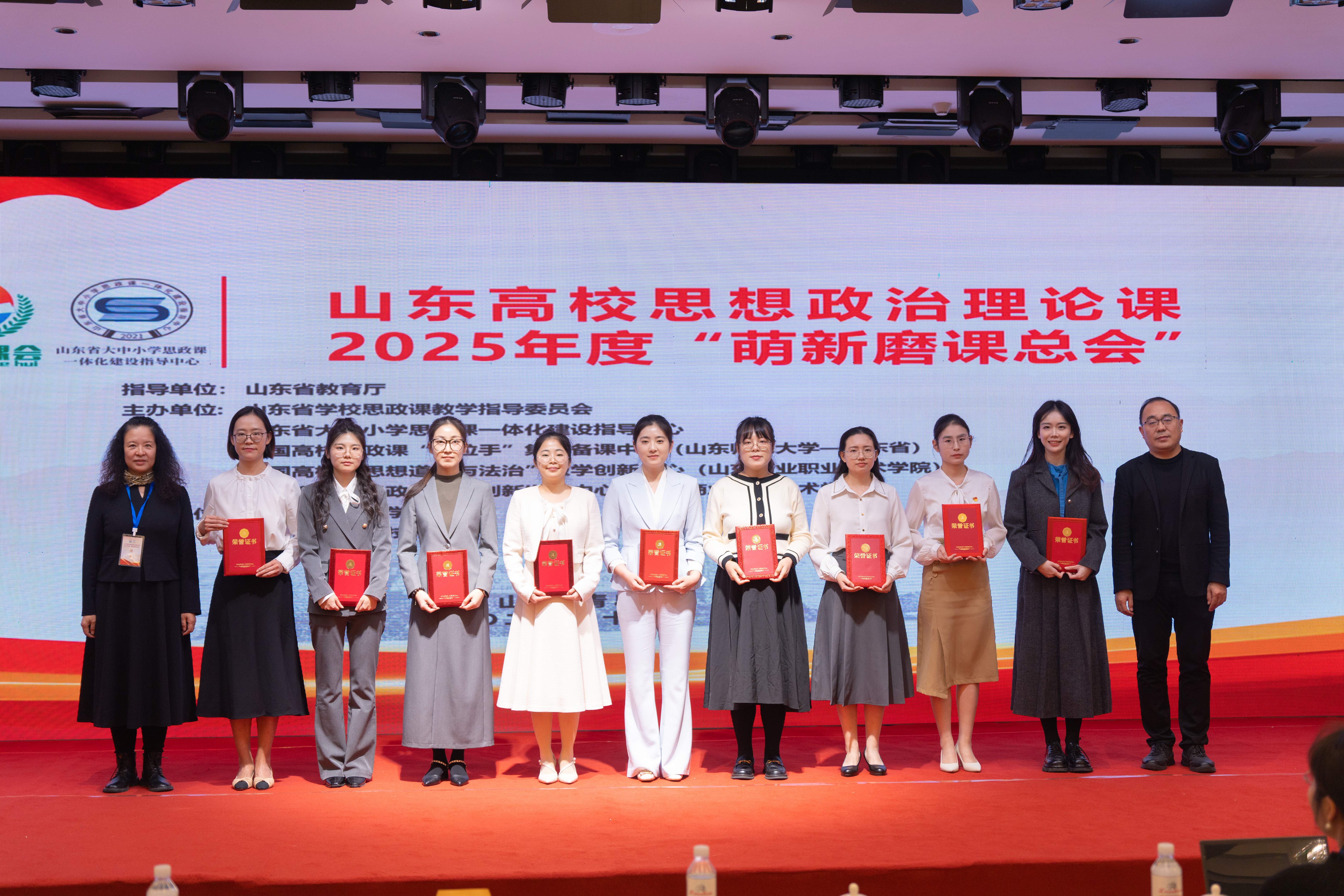 为全面深化大中小学思政课一体化建设,推动马克思主义学院高质量发展,提升思政课的吸引力和针对性,2025年12月5日,2025年度山东高校思想政治理论课“萌新磨课会”总会在青岛举办。我校青年教师林嵘凭借扎实的教学功底、创新的教学设计及生动的课堂呈现,在激烈角逐中脱颖而出,荣获大赛“一等奖”,为我校思政课建设再添佳绩。