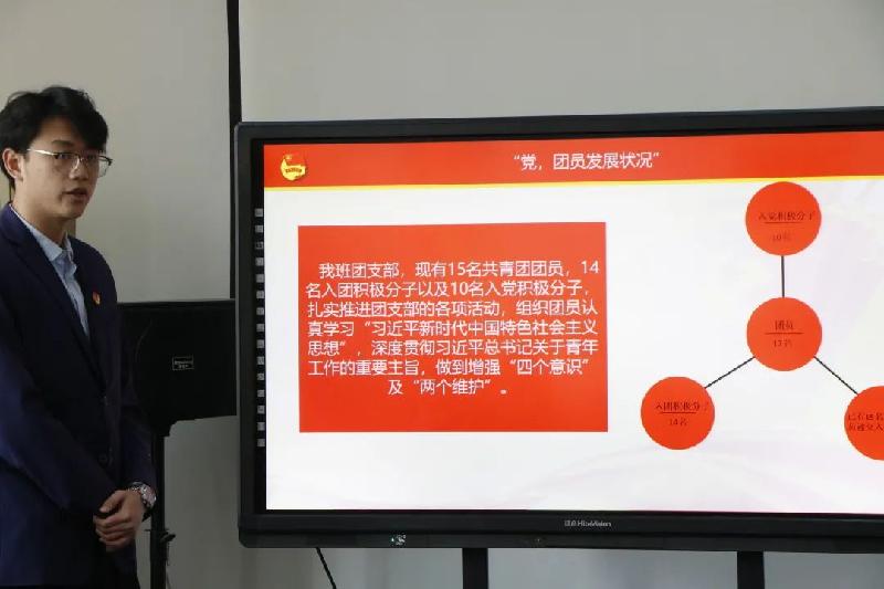 在“五四红旗团支部”答辩会中,各班团支部通过PPT的形式展示了班级的基本情况与所获荣誉,展现了班级的良好风貌与风采,同时,全面展示了作为团支部,应当积极开展理论学习,落实基础团务工作,开展志愿服务活动,打造出独特的班级风貌。通过各班代表的积极答辩,各位评委感受到了各团支部对建设班级的热情,展现了我系各班级争优创先的良好风貌。