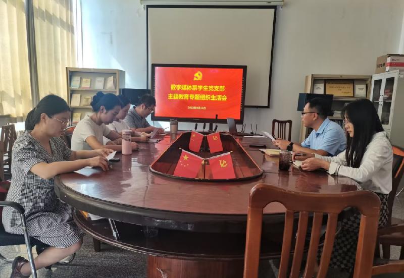 根据学院党委要求,数字媒体系学生党支部于9月13日下午两点在综合楼318召开学习贯彻习近平新时代中国特色社会主义思想主题教育专题组织生活会,本次生活会由学生党支部书记颜培园主持,全体党员参加,教师党支部书记王一如作为工作指导员列席会议。