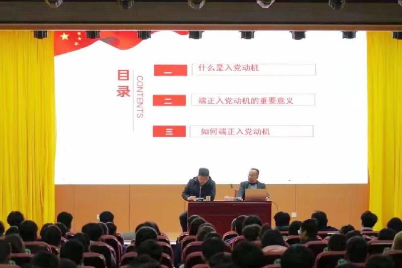 本次党课主要从端正入党态度叙述了入党积极思想。邢书记表示正确的入党的动机是全心全意为人民服务,第一,加强党的理论的学习,为正确的入党动机奠定基础。第二,通过实践锻炼,不断端正入党动机。第三、自觉接受党组织的培养教育和考察。并强调同学们要重品行、作表率,立志做有理想、敢担当、能吃苦、肯奋斗的新时代好青年。
