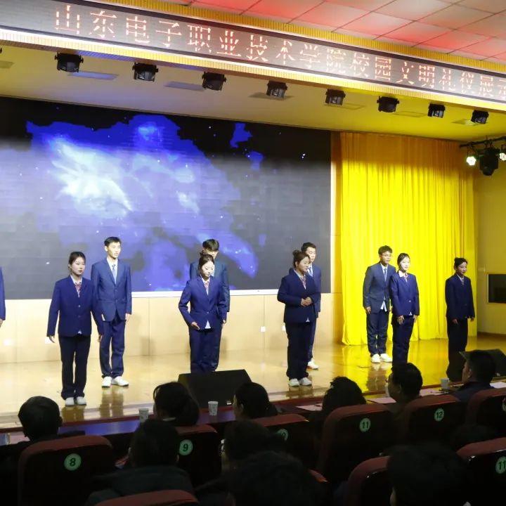比赛开始前,以文明礼仪诗朗诵作开场,诠释了我校学生端庄大方的精神风貌。随后,各系同学展示自己精心排练的内容,以个人的容貌仪态、社交礼仪和行为规范为基础,编排了精彩的歌舞操表演。经过一个多小时的精彩角逐和评委团的公正抉择,各个奖项也尘埃落定,数媒系的队伍荣获最佳活力团队的奖项。