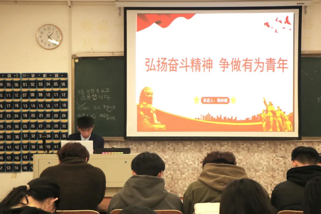 为提高我系同学们的思想政治素质、增强团员意识、加强思想道德建设,帮助同学们树立正确的世界观、人生观、价值观,3月19日晚,我系于2217教室开展“弘扬奋斗精神,争做有为青年”主题团课,团总支副书记韩林晓主持,我系22级、23级团员参加。
