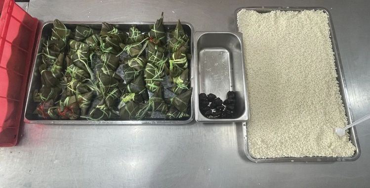 在包粽子环节中,师生分成若干小组,围在桌子旁,开始动手实践。只见大家手法娴熟,有的折叠粽叶,有的填充糯米和馅料,有的则负责系紧粽子。现场气氛热烈而融洽,不时传来阵阵欢声笑语。在大家的共同努力下,一个个形状各异、大小不一的粽子逐渐成形。