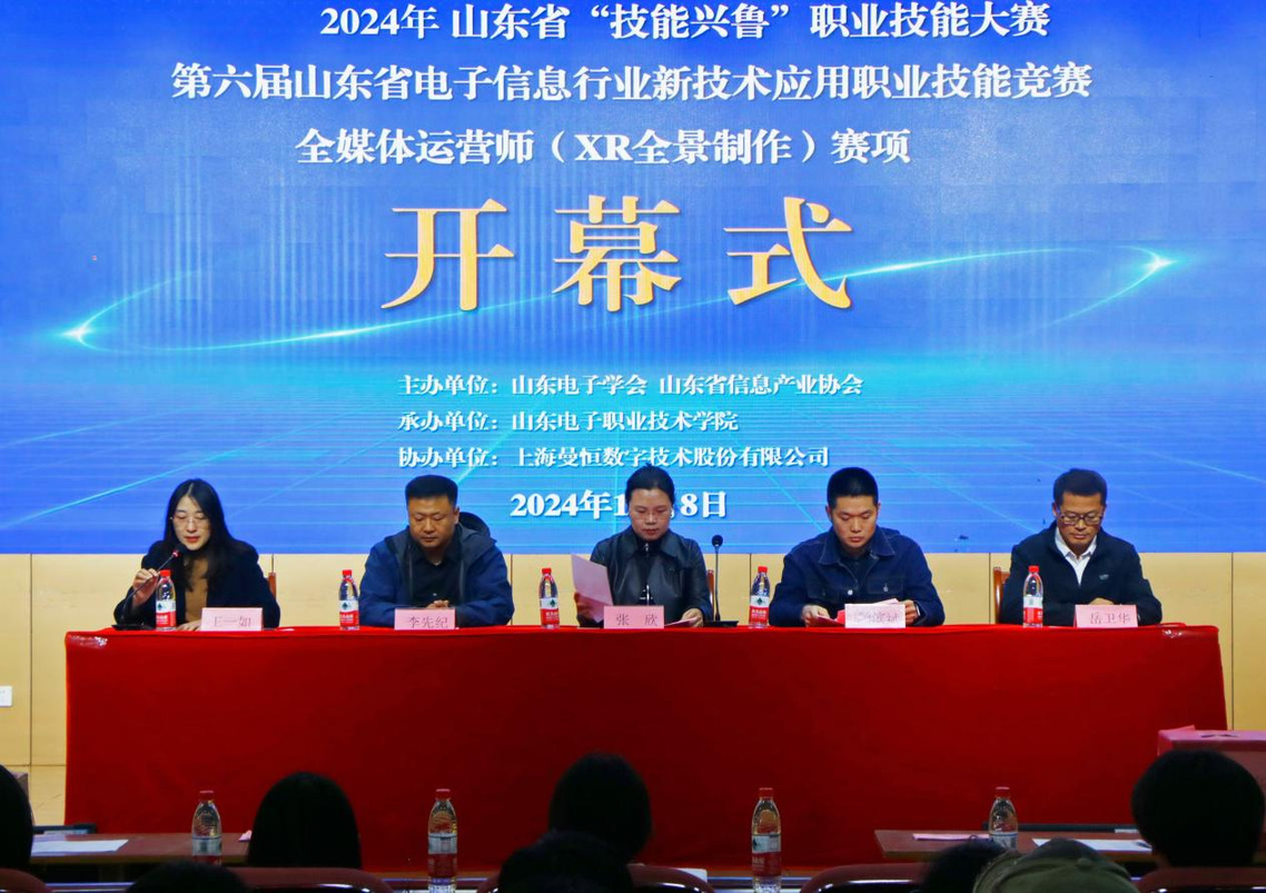 11月7日-8日,2024年山东省“技能兴鲁”职业技能大赛第六届山东省电子信息行业新技术应用职业技能竞赛全媒体运营师(XR全景制作)赛项在我校成功举办。来自全省职业院校、行业企业的近50支队伍参赛。