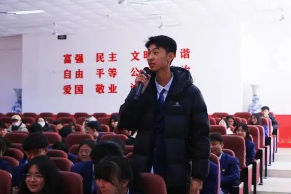 答疑互动环节,现场同学们就“学业规划与职业目标结合”“如何应对多重压力”等问题请教,于老师结合新时代人才需求特点,建议同学们树立“动态成长观”,在保证学业的同时,通过参加学科技能竞赛、志愿服务等活动提升综合素质,让自己“忙”起来。